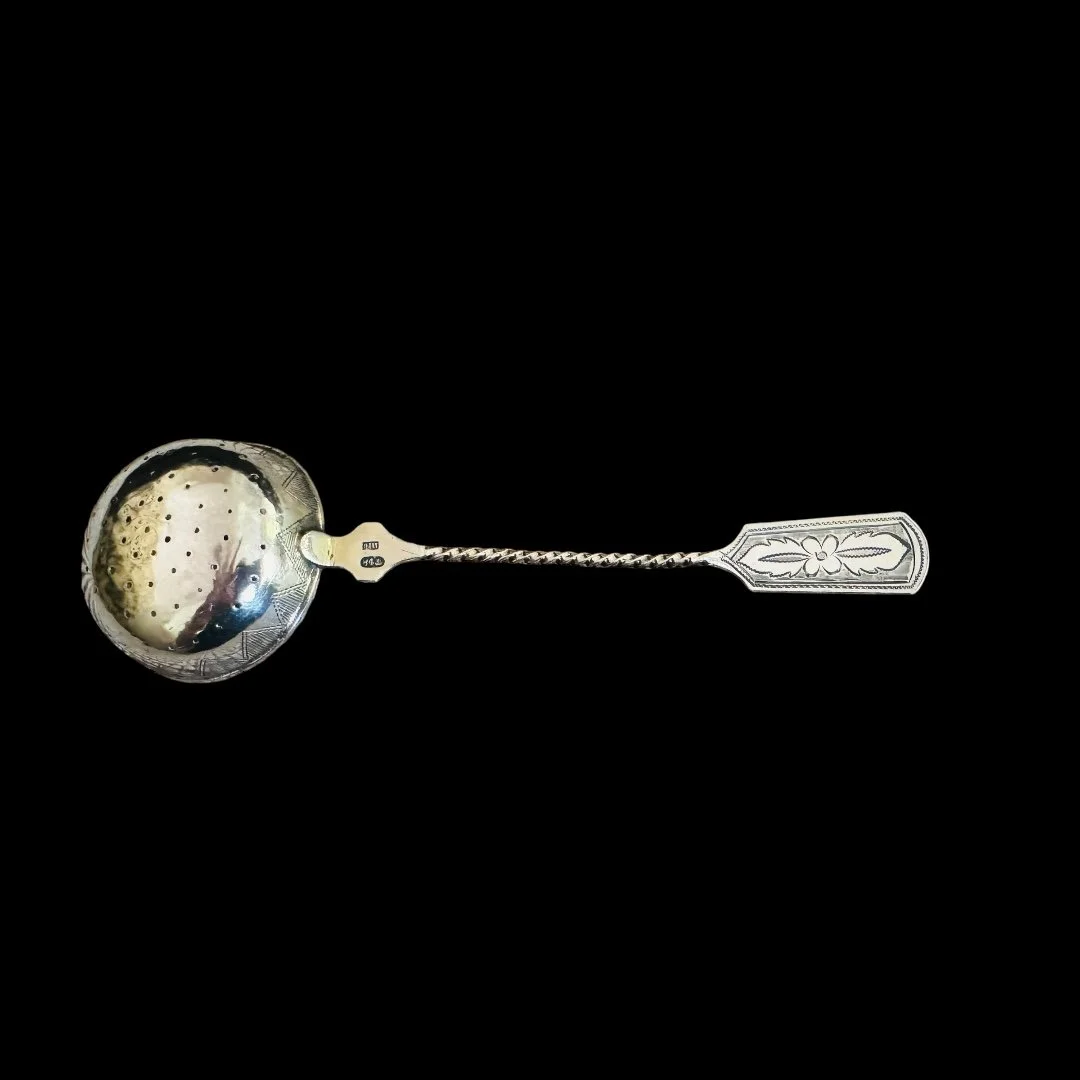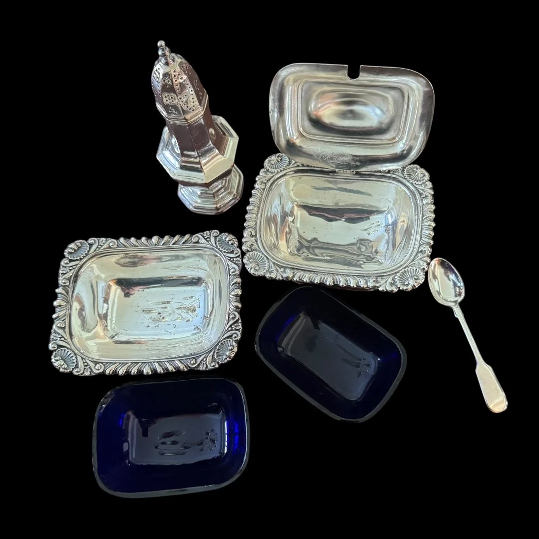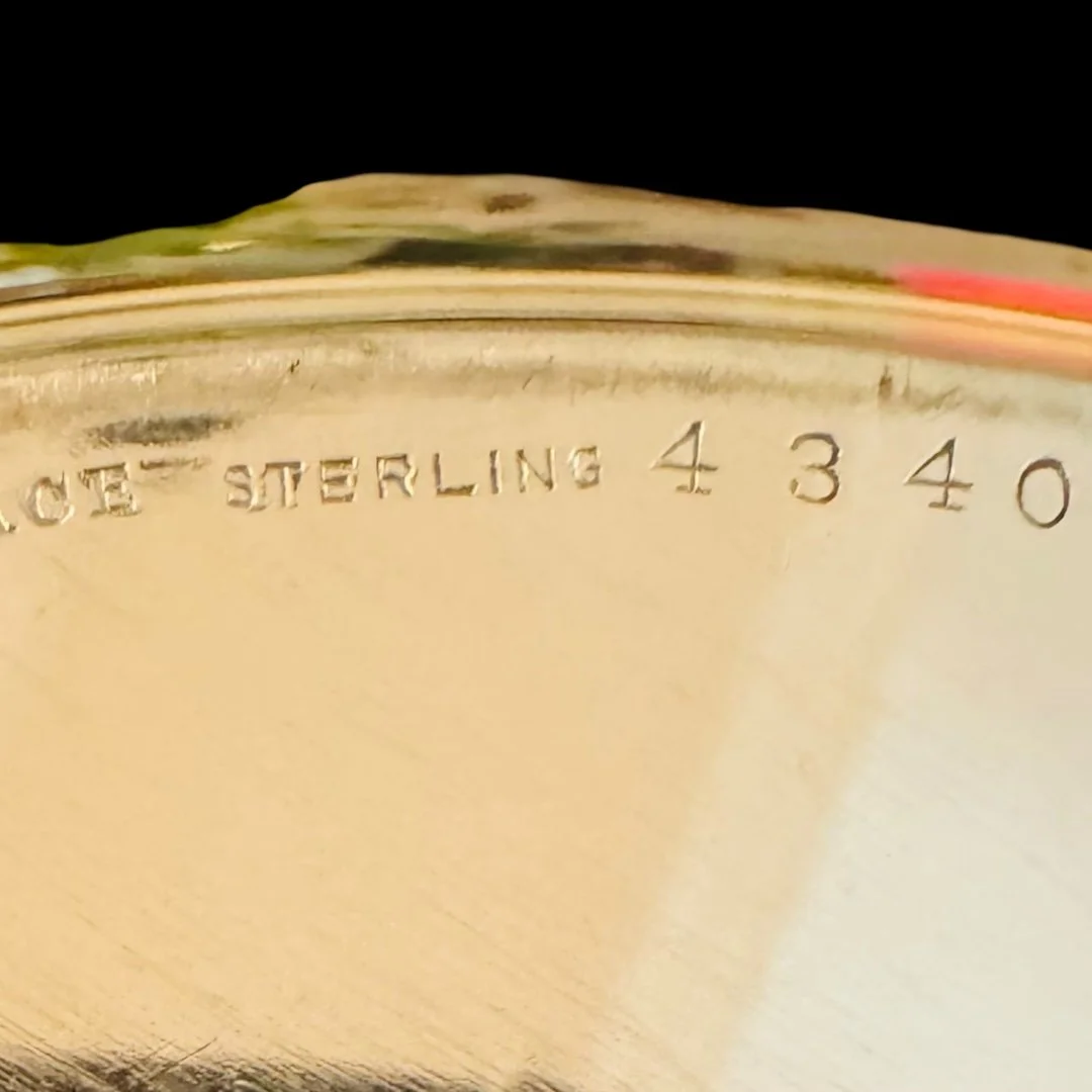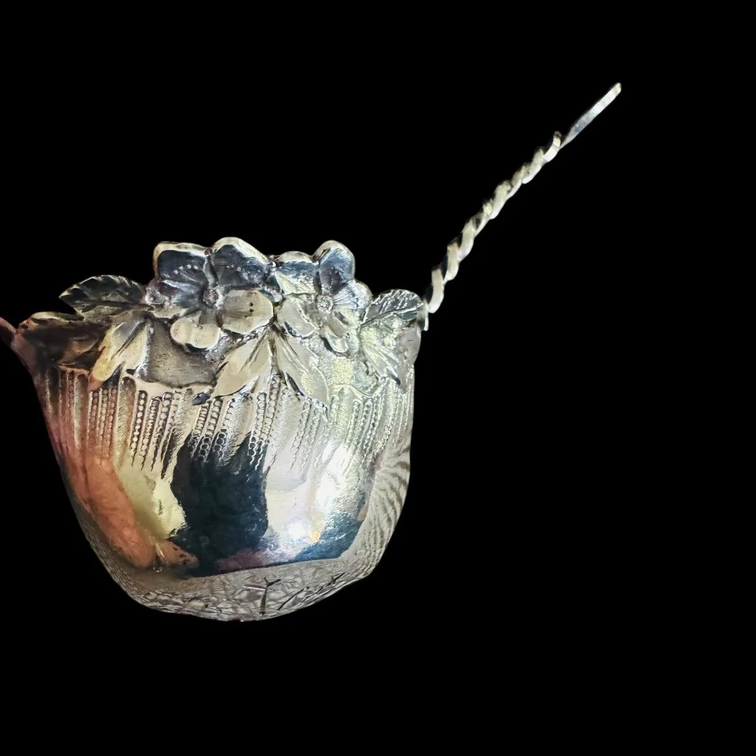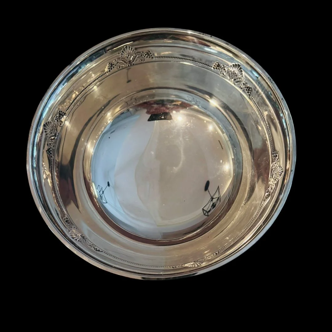 Categories: Select a Category Baby Gifts Baby Cups Baby Sets Feeding Spoons & Forks Figurines Food Pushers Frames Rattles Barware Bar Tools Cocktail Shakers Decanters Flasks Jiggers Julep Cups Sipper Straws & Stirrirs Shots Tumblers Collegiate Items Georgia Bulldogs Christmas Decor Ornaments Flatware Forks Knives Other Sets Serving Pieces Spoons Tongs Gorham Flatware Forks Knives Sets Spoons Tongs Strasbourg Chantilly Home Decor Bowls Candelabras Frames Trays Vases Jewelry Linens Cocktail Napkins Handkerchiefs Napkins Placemats Towels Napkin Rings Glass, Porcelain & Pottery Serveware Dishes Glasses Pitchers Salt Cellars & Shakers Sets Tea Items Trays Wedding Gifts Barware Home Decor Serving and Flatware Wedding Gifts Baby Gifts Barware Collegiate Items Christmas Decor Flatware Gorham Home Decor Jewelry Linens Napkin Rings Glass, Porcelain & Pottery Serveware Wedding Gifts Barware Home Decor Serving and Flatware English Stag Handle Double Jigger $200.00 Set of 10 Pilgrim Silver Co Wine Goblets $350.00 Antique English Silver on Copper Holder with Decanters $275.00 Bright Cut Design on Twisted Handle Tea Strainer $125.00 Twisted Handle Sterling Tea Strainer $125.00 Diamond Shaped Strained $125.00 Barker Brothers Rattan Handle Wine Holder $225.00 Sheffield Champagne Cooler with Lion Handles $250.00 4 Piece "Violet" by Wallace Flatware Set $200.00 English Ellis Barker Centerpiece Bowl $290.00 Manchester Sterling Gadroon Border Bread Tray $250.00 Randahl Sterling Bowl $175.00 Rockford Quadruple Plated Syrup Pitcher $150.00 2 Pc Art Krupp Berndorf Silver Plated Fish Tray & Server $225.00 Set of 4 Watson Sterling Sipper/Straws Sale Price: $96.00 Original Price: $120.00 Sold out English Sterling Napkin Ring $70.00 Antique Towle "William" Napkin Ring $125.00 Sold out Lunt Triple Band Sterling Napkin Ring $60.00 Antique English Sterling Napkin Ring C:1924 $75.00 Antique English Barker Bros. Napkin Ring C:1921 $75.00 Vintage English Sterling John Rose Napkin Ring C:1968 $60.00 Antique English Crisford & Norris Napkin Ring $60.00 Antique Sterling/Crystal Syrup Pitcher $300.00 Toast Rack With Jam Holders Sale Price: $120.00 Original Price: $150.00 Sold out Sterling 8.75" Olive Spoon $110.00 Sterling Catch All $125.00 The Merrill Shop Sterling Tray $175.00 Set/ 6 English John Roberts 4 3/8" Spoons $150.00 Set of 12 Maciel Champagne/Dessert Goblets $3,300.00 Fischer Sterling Compote & Sterling "L" Spoon $155.00 Sterling Webster Tea Strainers with Waste $145.00 Ellis Barker Silver on Copper Gallery Tray $225.00 Wm Rogers "Carnation" Soup Ladle C:1908 $95.00 Whiting Sterling "Arabesque" Mustard Ladle C:1875 Sale Price: $72.00 Original Price: $90.00 Sold out Set/4 Wallace "Violet" Teaspoons Engraved"K" C:1904 $160.00 Wallace Sterling "Violet" Cocktail Fork , Engraved "K" C:1904 Sale Price: $24.00 Original Price: $30.00 Sold out Wallace "Violet" Place Forks C:1904 Engraved "K" $65.00 Towle "Old Master" 4 Piece Set $200.00 Towle "Old Master" Cream Soup Spoon $55.00 Wallace "Violet" 6.25" Salad Forks $55.00 Wallace Syerling "Violet" 7 1/8 Fork C:1904 $55.00 Wallace "Violet" 9" Knives C:1904 $45.00 Wallace "Violet" 6" Teaspoon C:1904 $40.00 Knowles & Ladd "Apollo" Ruffled Sauce Ladle $90.00 Wallace "Violet" 9.5" Knife C:1904 $50.00 S. Kirk & Sons "Wadefield" Tongs $95.00 Lunt "Eloquence" Sugar Shell $50.00 Wood & Hughes "Gadroon" Tea Knife $60.00 Gorham "Maryland" Preserve Spoon $95.00 Rogers "Brenton Rose" Master Butter Knife $48.00 Amston Sterling "Concord" Fish Server $200.00 Towle "Old Master" Tomato Server $150.00 Towle "El Grande" Serving Spoon $125.00 Rogers "Brenton Rose" 6 Pcs. Flatware $200.00 Sterling Serving Fork - Engraved "HST" $80.00 Gorham "King Albert" Meat Fork - Engraved "G" $60.00 Alvin "Virginia" 8 1/2" Pickle Fork $65.00 Weidlich "Ancestry" Sardine Fork $90.00 Saart "Simplicity" Meat Fork - Engraved "AFB" $65.00 Rogers "Brenton Rose" Meat Fork $125.00 Sterling 7 3/4" Pickle Fork $60.00 Gorham "Cambridge" Large Confection Server - Engraved "J" $95.00 Towle "Mary Chilton" Berry Spoon - Engraved "A" $65.00 Gorham "Rosette" Serving Spoon - Engraved "W+R.M to J+ZH" $90.00 Gorham "Luxembourg" Serving Spoon - Engraved "Murphee" $85.00 Rogers "Brenton Rose" Sugar Spoon $45.00 Durgin "New Standish" Berry/Casserole Spoon $185.00 International "Wedgewood" Sterling Bowl $700.00 Manchester Sterling Wine Coaster $90.00 KIrk Presidential Wine Coaster $85.00 Forbes Silver Co. "Washington" Silver Plated Floral Arranger $225.00 F.M. Whiting "Josephine" Master Salt Spoon $30.00 Ellis Barker Pedestal Salt Dish $35.00 Salisbury Pewter Jewelry Box $50.00 Web Pewter Double Jigger $48.00 Sold out 48 Pc Set "Old Master" By Towle $2,800.00 English 6 Slice Toast Rack $120.00 Meriden Brita 6 Slice Toast Rack $135.00 Silver Plated Catchall $25.00 English Grenadier Boot Jigger $65.00 Kirk Repousse Sauce Ladle $70.00 "Wild Rose" Sterling Gravy Ladle $100.00 "Devonshire" Sterling Serving Spoon $125.00 "Devonshire" Sterling Meat Fork $125.00 Old. Master Serving Spoon $125.00 Wallace "Nordic" Sterling 12 3/4" Tray $800.00 Sterling Round Tray by Tuttle $800.00 Set of 6 Gorham Sterling Bread Plates $750.00 Alvin Sterling Bread Plates $750.00 Sterling "Repousse" Bowl $150.00 Sterling Wedding Cup Jigger $130.00 Wallace "Hampton" Casserole/Serving Spoon $170.00 Wallace "Sir Christopher" Tomato Server $175.00 English Sterling Frame $220.00 "Eloquence" By Lunt Sterling Cold Meat Fork $115.00 Barker Brothers Sugar Shaker $90.00 Wallace 1978 Limited Edition Tulip Egg $65.00 Towle "El Grande" 32 Piece Set $1,850.00 Pair of Antiques Forbes Silver Plated Candlesticks $120.00 Ellis Barker Silver on Copper Salt Keeps $30.00 Set of 12 Kirk "Repousse" Sterling Cocktail Forks Sale Price: $240.00 Original Price: $300.00 Sold out Antique Silver/Etched Crystal Decanter $350.00 Set of 4 Each Vintage Madeira Linen Place Mats And Napkins $80.00 Set of 12 Hand Embroidered "SPM" Linen Napkins 1950 $120.00 English Ellis Barker 14" Tray $150.00 Set